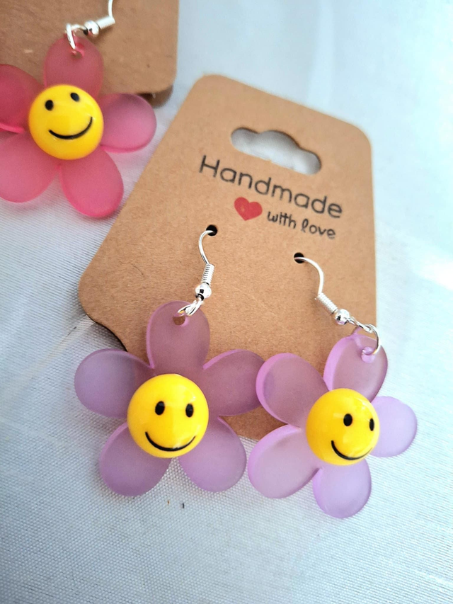 Unlock your inner flower-child with these hiptastic, psychedelic earrings! Handmade from polymer clay and resin, these happy little flowers will definitely put a smile on your face! Constructed on a stainless steel, hypoallergenic french hook.